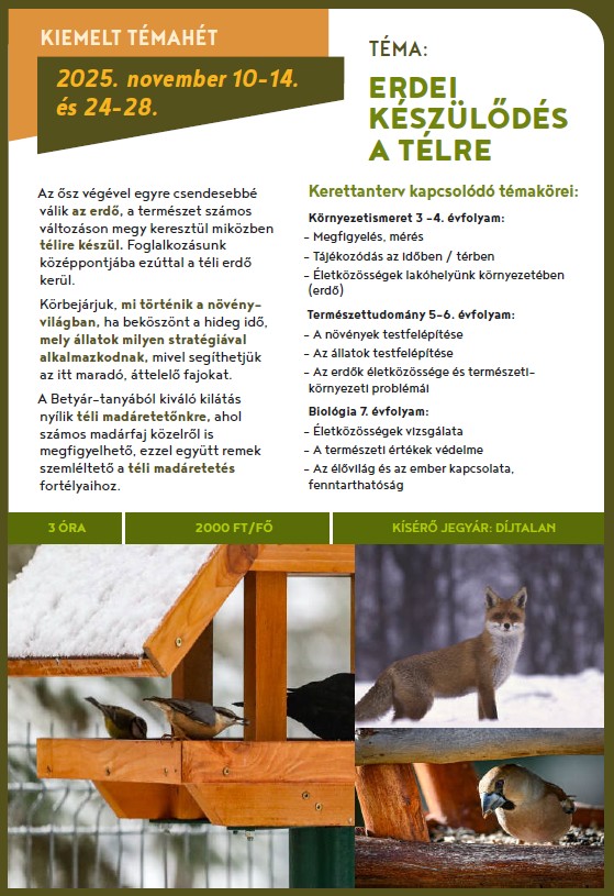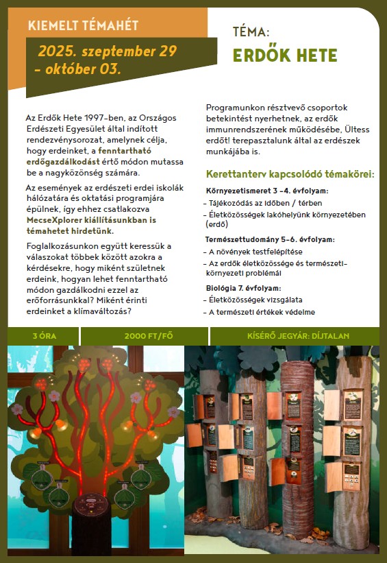 Kiemelt témahetek | 2 000 Ft/fő | 3 óra |