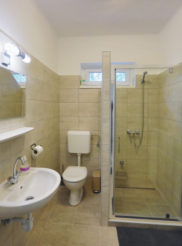 – Zuhanyzós fürdőszoba WC-vel (1 db. kéztörlőt biztosítunk)