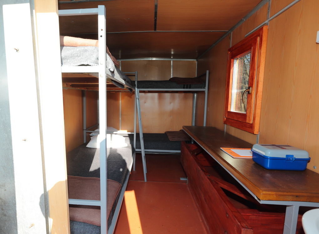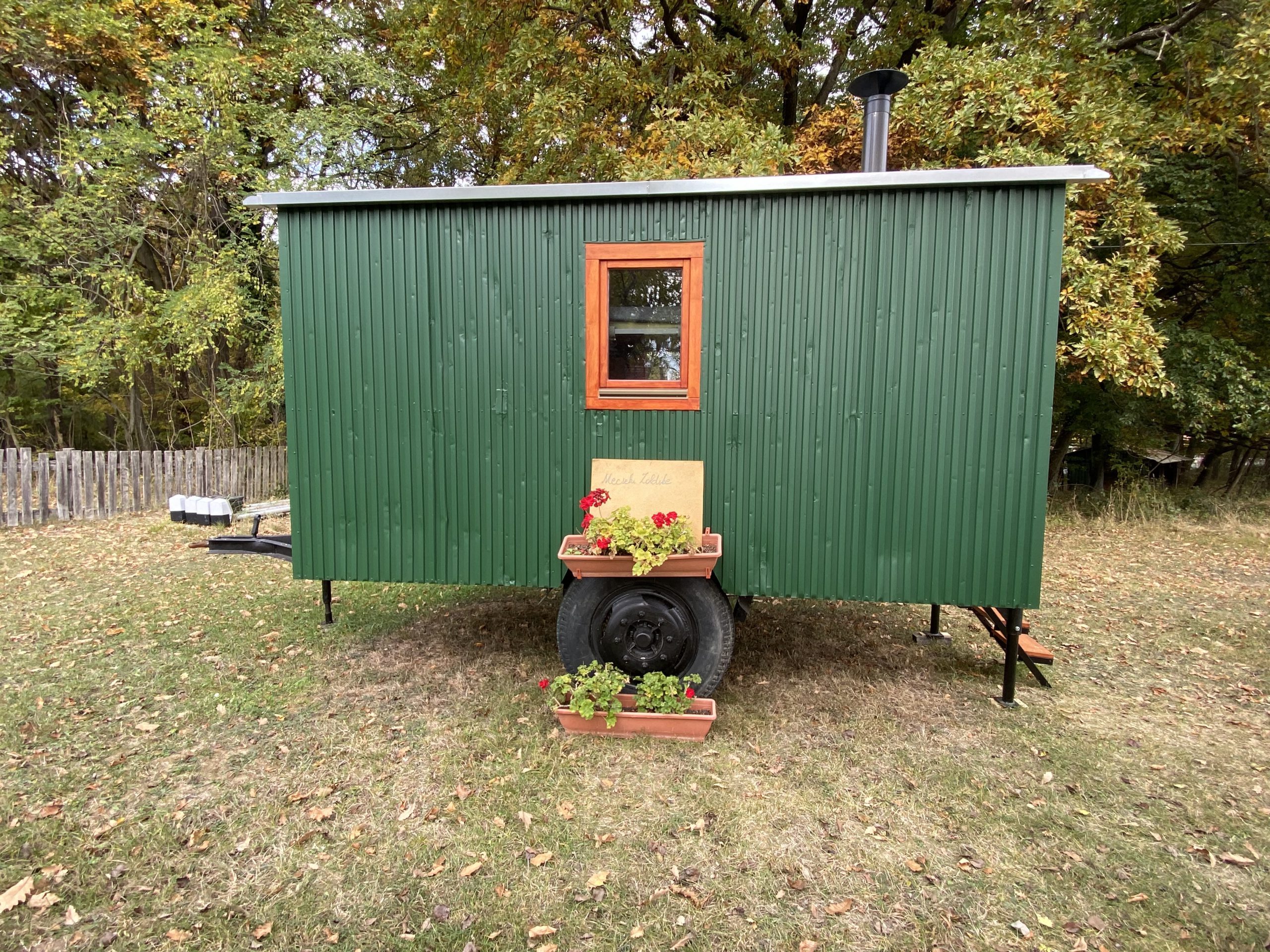 Értékmentés céljából került kialakításra ez a régi erdészeti vágástéri melegedő bódé. Régen a favágók használták, sokszor itt pihentek vagy akár laktak is munka közben. Mivel könnyen mozgatható volt, mindig oda tudták vontatni, ahol éppen a fakitermelés zajlott.